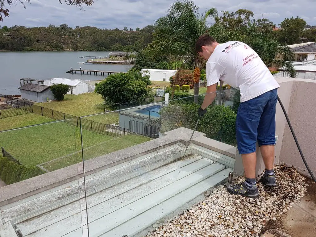 Before and after balcony and pool tile pressure cleaning in Darling Point, Sydney by Vakker Australia.